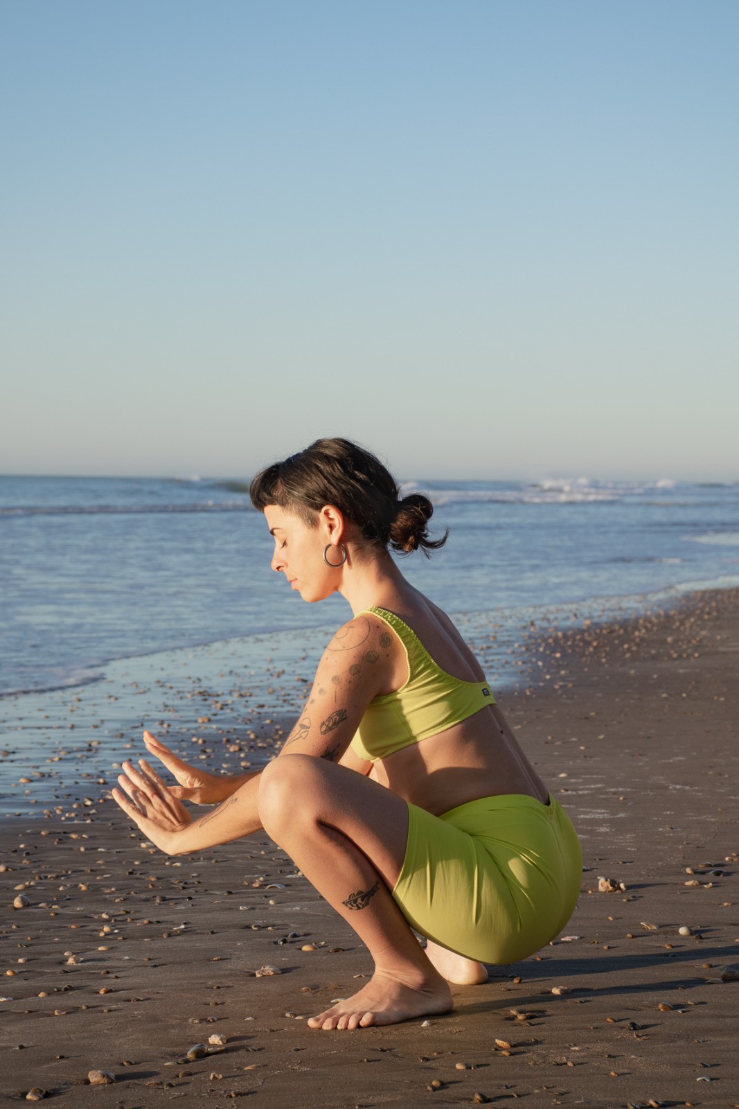 Soy Vera, vivo en Quequén, cerca del mar, pero vengo de la ciudad de La Plata. Siempre me interesó el cuerpo y sus posibilidades, y mis primeros acercamientos fueron a través del teatro y la acrobacia. Luego, conocí la práctica de Yoga en el 2010 con el estilo Integral, donde me sostuve como practicante muchos años hasta formarme en esa misma escuela como Instructora y profesora. Luego me dediqué a viajar al terminar la carrera universitaria de Historia del Arte, y en el 2015 empecé a dar clases de Yoga y a dedicarme a eso. Continué formándome con varios cursos en relación a la respiración, la biomecánica, la osteopatía aplicada a la práctica y la meditación. Viajé a India, a donde tomé prácticas avanzadas a cargo de Surinder y profesores de su escuela. En el 2024 completé mi formación de 200hs de Camila Maqueira de Yoga postural y en 2025 terminé la formación avanzada de 300hs en la misma escuela.